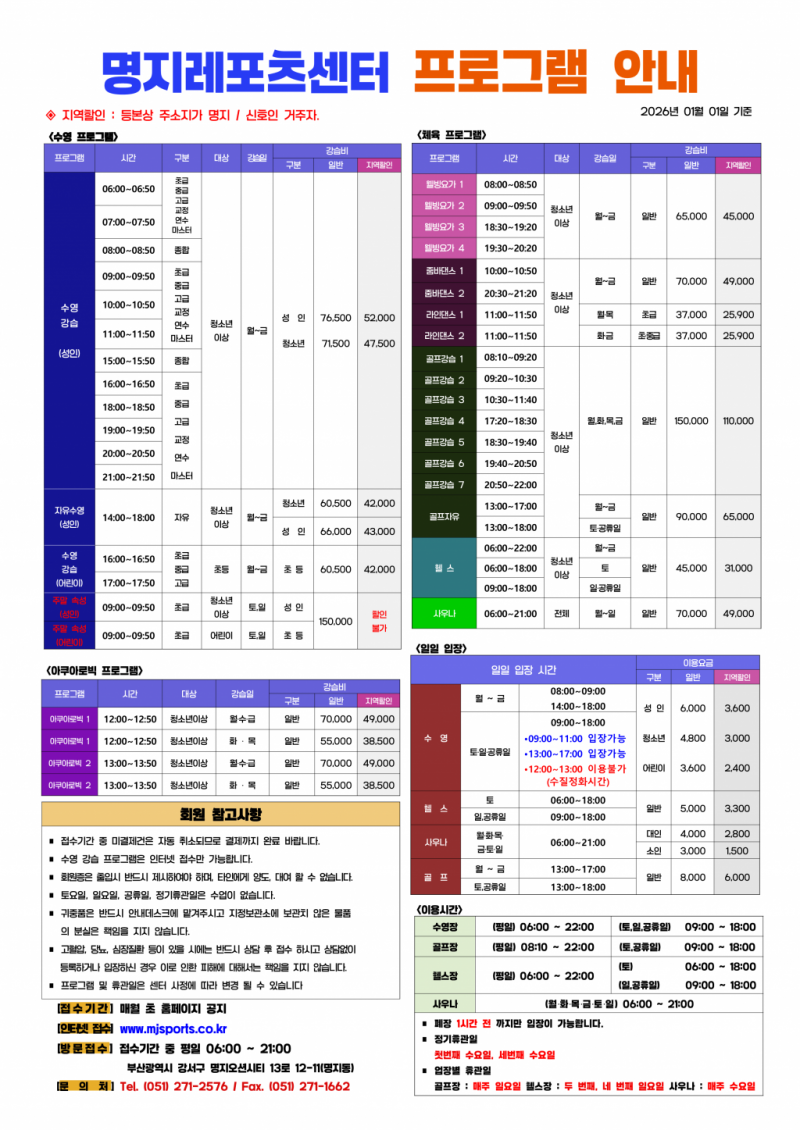명지레포츠 프로그램 안내 페이지 정보 작성자 관** 댓글 0건 조회 268회 작성일 26-03-27 09:45 목록 본문 명지레포츠 프로그램 안내 다음글2026년 4월 일정표 26.03.27